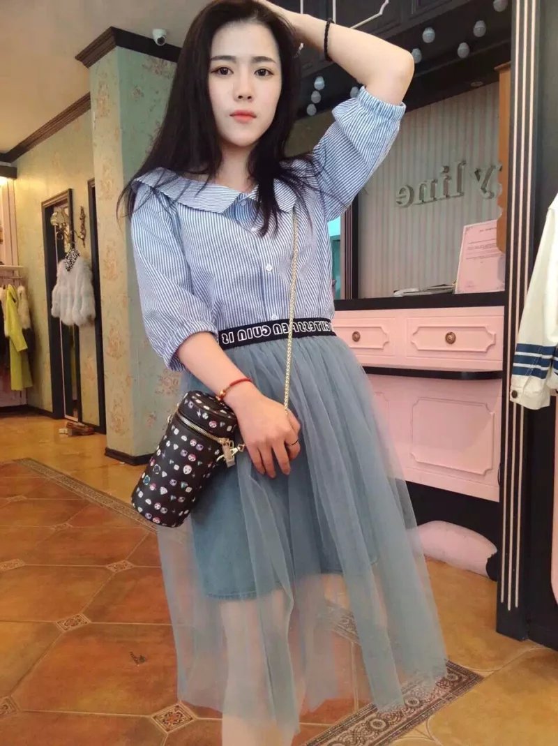 / 2017春季新款韓版甜美一字領條紋中袖襯衫女學生小清新襯衣女