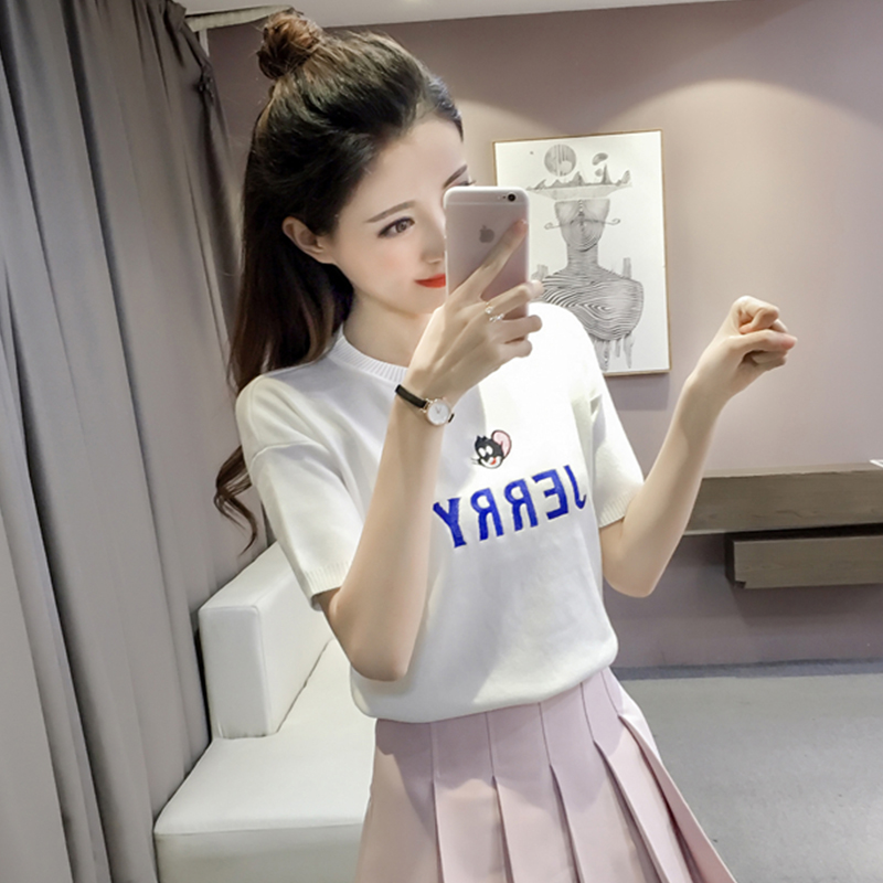 / 韓版夏裝新款卡通圓領上衣修身顯瘦t恤女士短袖套頭針織打底小衫