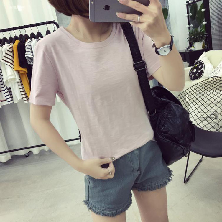 韓版女裝白色竹節棉t恤女休閑簡約打底衫棉短袖上衣夏裝體恤