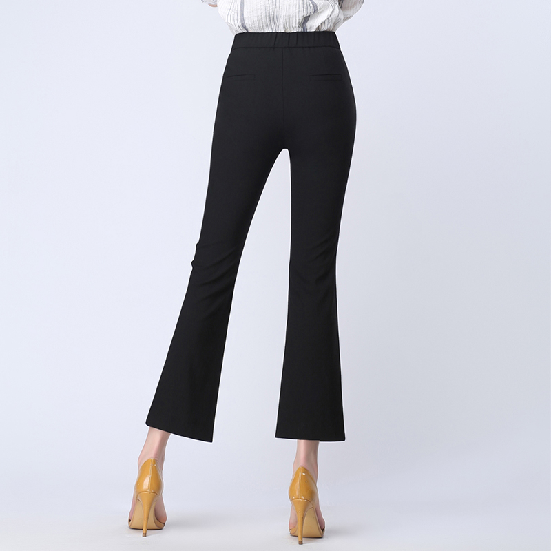 / 春夏季新款高腰微喇叭褲女褲顯瘦修身九分褲開叉魚尾西褲休閑褲女